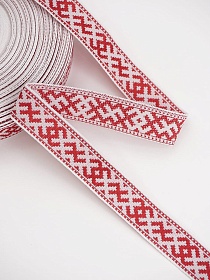 Жак.лента 18мм Красный оберег на белом, рис.9711/1