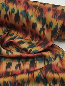 Штапель Премиум "Икат" цв.терракот/изумруд, ш.1.5м, вискоза-100%, 125гр/м.кв