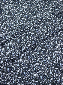 Штапель "Цветочная кадриль (белые цветы на чернильном)", СОРТ2, ш.1.43м, вискоза-100%, 90гр/м.кв