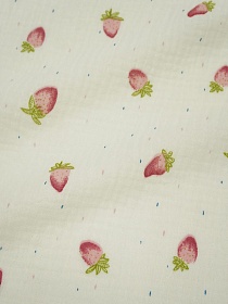 10164 товаровМуслин двухслойный с эф.жатости "Клубничка" цв.сливочный, ш.1.35м, хл-100%, 115гр/м.кв