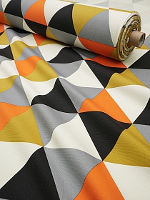 Интерьерный хлопок "Разноцветные треугольники" цв.оранжевый/черный, ш.1.5м, хлопок-100%, 240гр/м.кв