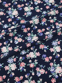 Штапель Премиум "Винтажные букетики из роз на черно-синем", 1.45м, вискоза-100%, 110гр/м.кв