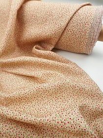 Лен с вискозой Цифр.печать "Россыпь красных цветочков на бежевом", ш.1.35м, лен-70%, вискоза-30%, 180гр/м.кв