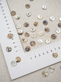 10490 товаровПуговица перламутр, цв.серо-бежевый хамелеон, СОРТ2, 13мм, 2 отверстия