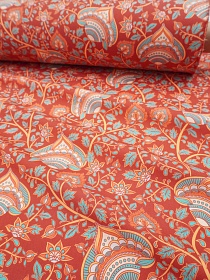 Перкаль Премиум (Digital) "Павлины на кирпично-терракотовом фоне", ш.1.5м, хлопок-100%, 120гр/м.кв