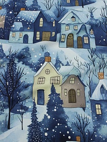 10929 товаровПоплин "Горный серпантин-домики" цв.синий, (комп), ш.2.2м, хлопок-100%, 105гр/м.кв