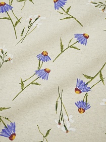 9131 товаровПолулен "Альпийская ромашка-синие цветы" (на суровом), ш.1.5м, лен-30%, хлопок-70%, 140гр/м.кв