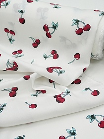 Штапель "Вишенки на молочно-сливочном", ш.1.42м, вискоза-100%, 90гр/м.кв