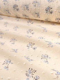 Фактурный хлопок "Шарики - голубые букетики" цв.кремовый, ш.1.4м, батист, хлопок-100%, 60гр/м.кв