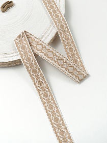 Жак.лента 23мм Ромб-цветок цв.белый/бежевый
