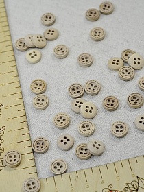 Пуговица с штрихами по кругу дерево без покрытия ,11мм, 4 отверстия