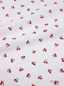 Импорт. хлопок "Маленькие спелые вишенки на белом", ш.1.45м, хлопок-100%, 100гр/м.кв