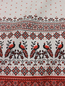 Полулен "Вышивка петушки на суровом с каймой", ш.1.5м, хлопок-70%, лен-30%, 140гр/м.кв