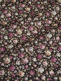 Импорт. хлопок "Розы сиренево-бордовые" цв.шоколадный, ш.1.45м, хлопок-100%, 100гр/м.кв