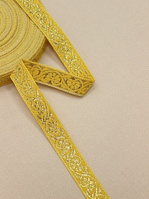 11055 товаровЖак.лента 18мм Золотистый цветочный орнамент на желтом, рис.9820/2