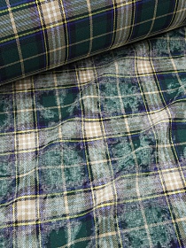 Фуле с вареным эффектом "Клетка" цв.темно-зеленый/бежевый, ш.1.45м, хлопок-100%, 175гр/м.кв