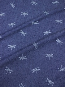 10913 товаровДжинсовая ткань "Стрекозки на чернильной джинсе", ш.1.45м, хлопок-85%, п/э-15%, 135гр/м.кв