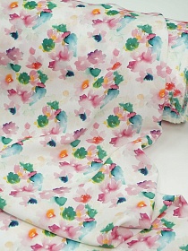 Штапель Премиум (Digital) "Нежная акварель(розовые цветы)", ш.1.45м, вискоза-100%, 110гр/м.кв