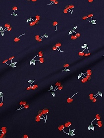 Штапель "Вишенки на чернильно-фиолетовом", ш.1.43м, вискоза-100%, 90гр/м.кв
