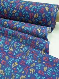 Ситец "Цветная флора" цв.чернильно-васильковый, ш.0.8м, хлопок-100%, 85гр/м.кв