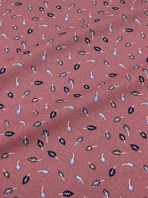 Теплый хлопок "Листочки на бруснично-пепельном", СОРТ2, ш.1.45м, хлопок-100%, 140гр/м.кв