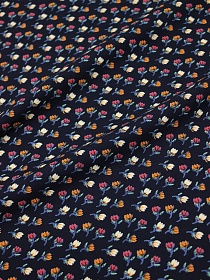 Штапель Премиум "Цветные тюльпанчики на чернильно-черном", ш.1.43м, вискоза-100%, 120гр/м.кв