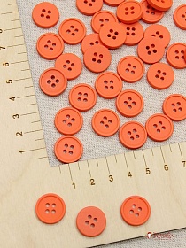 Пуговица пластмасса, цв.кораллово-оранжевый, 15мм, 4 отверстия
