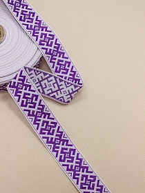 Жак.лента 33мм Фиолетово-пурпурные славянские знаки на белом