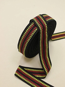 Лента тканая для поясов, 40мм Красный с желтым орнамент на черном