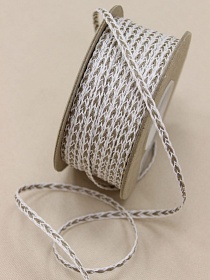 Тесьма отделочная "Косичка" цв.белый/кофейно-бежевый, ш.6мм, хлопок-84%, п/э-16%