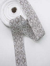 Жак.лента 52мм Серо-бежевая снежинка-цветок на белом