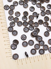 Пуговица темно-коричневое дерево (светлый ободок),15мм, 4 отверстия