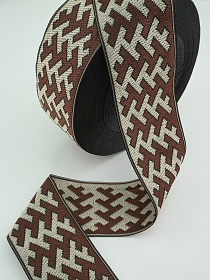 2830 товаровЖак.лента 65мм Коричневый/бежевый орнамент на белом