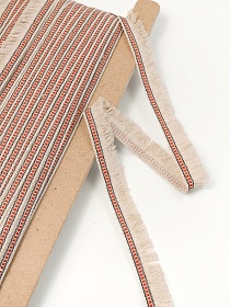 95 товаровТесьма с бахромой и красно-черной полоской, 20мм, лен/вискоза-90%, п/э-10%,