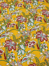 Импорт. хлопок "Цветочная полянка" цв.светло-горчичный, ш.1.45м, хлопок-100%, 100гр/м.кв