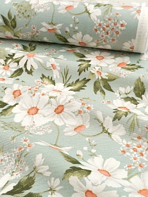 Ткань Дак "Луговые мечты" цв.мятный, ш.1.8м, хлопок-65%, п/э-35%, 200гр/м.кв