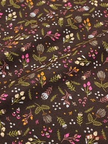 Теплый хлопок "Разнотравье на шоколадно-коричневом", ш.1.45м, хлопок-100%, 160гр/м.кв
