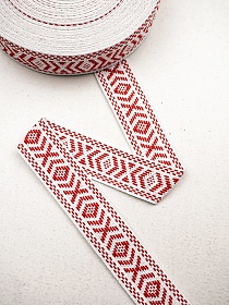 566 товаровЛента тканая для поясов, 35мм Ромб-Крест, цв.красный/белый