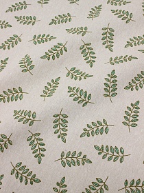 Полулен "Мелкие зеленые веточки" (на суровом), ш.1.54м, лен-40%, хлопок-40%, п/э-20,175гр/м.кв