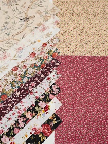 Набор тканей для рукоделия "Лен с вискозой Цифр.печать: Мелодия цветов", 20*20 см, 12 шт