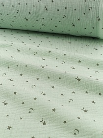 Муслин двухслойный с эф.жатости "Звездная сказка" цв.морозно-мятный, ш.1.4м, хл-100%, 110гр/м.кв