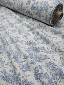 10948 товаровХлопколен ("Digital") "Туаль де Жуи - прованс" цв.джинс (на суровом), ш.1.4м, лен-15%, хл-85%, 125гр/м.кв