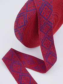 Лента тканая для поясов, 50мм Синие ромбы на красном