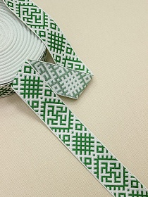 Жак.лента 32мм Зеленые славянские знаки на белом