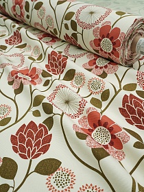 10526 товаровМерный лоскут (ткань в отрезах) Интерьерный хлопок "Марьин сад" цв.коралловый, ш.1.5м, хлопок-100%, 250гр/м.кв