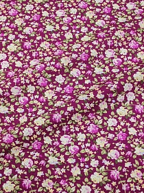 Импорт. хлопок "Розы сиренево-желтые" цв.пурпурный, ш.1.5м, хлопок-100%, 105гр/м.кв