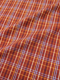 Мерный лоскут (ткань в отрезах) - Пестрядь этнограф. под домоткань"Оранжевая/голубая/чернильная клетка на красно-кирпичном"
