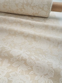 Полулен "Белые розы", (на суровом), ш.2.2м, лен-30%, хлопок-70%, 140гр/м.кв
