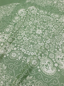 БРАК (цена снижена) Штапель "Цветочная пьеса на винтажно-зеленом", ш.1.43м, вискоза-100%, 120гр/м.кв