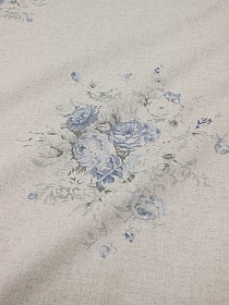 4302 товаровМерный лоскут (ткань в отрезах) - Полулен "Поллианна (голубые цветы)" (на суровом), ш.1.5м